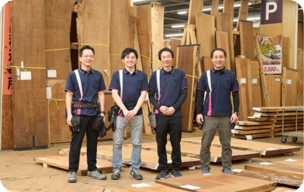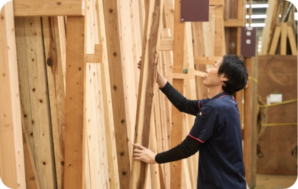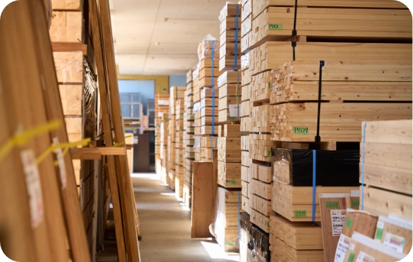 木材・建材・造作材をはじめ、プロユースに応える豊富な在庫。他社では扱いの少ない国産材・無垢材・銘木をラインナップ。家一軒をまるごと建てられる、あらゆる資材が揃います。