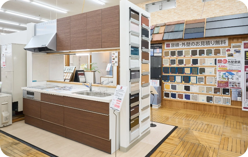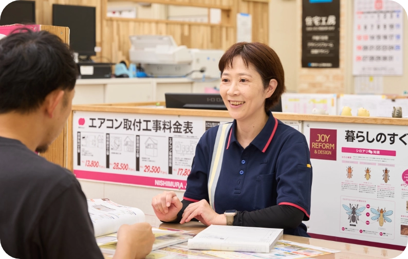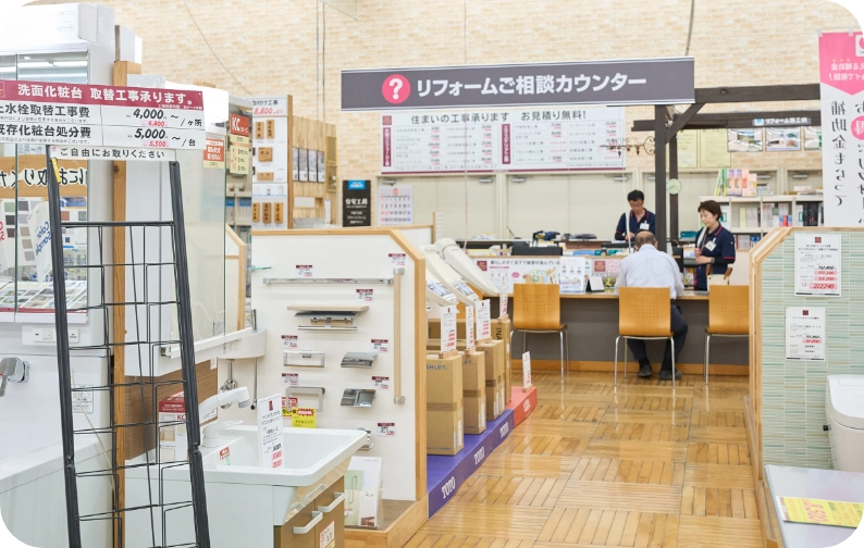 現場調査・お見積りも無料!しつこい営業はないので、お買い物ついでにカウンターで気軽に相談ができます。他社のお見積もりの持ち込みも大歓迎です。
