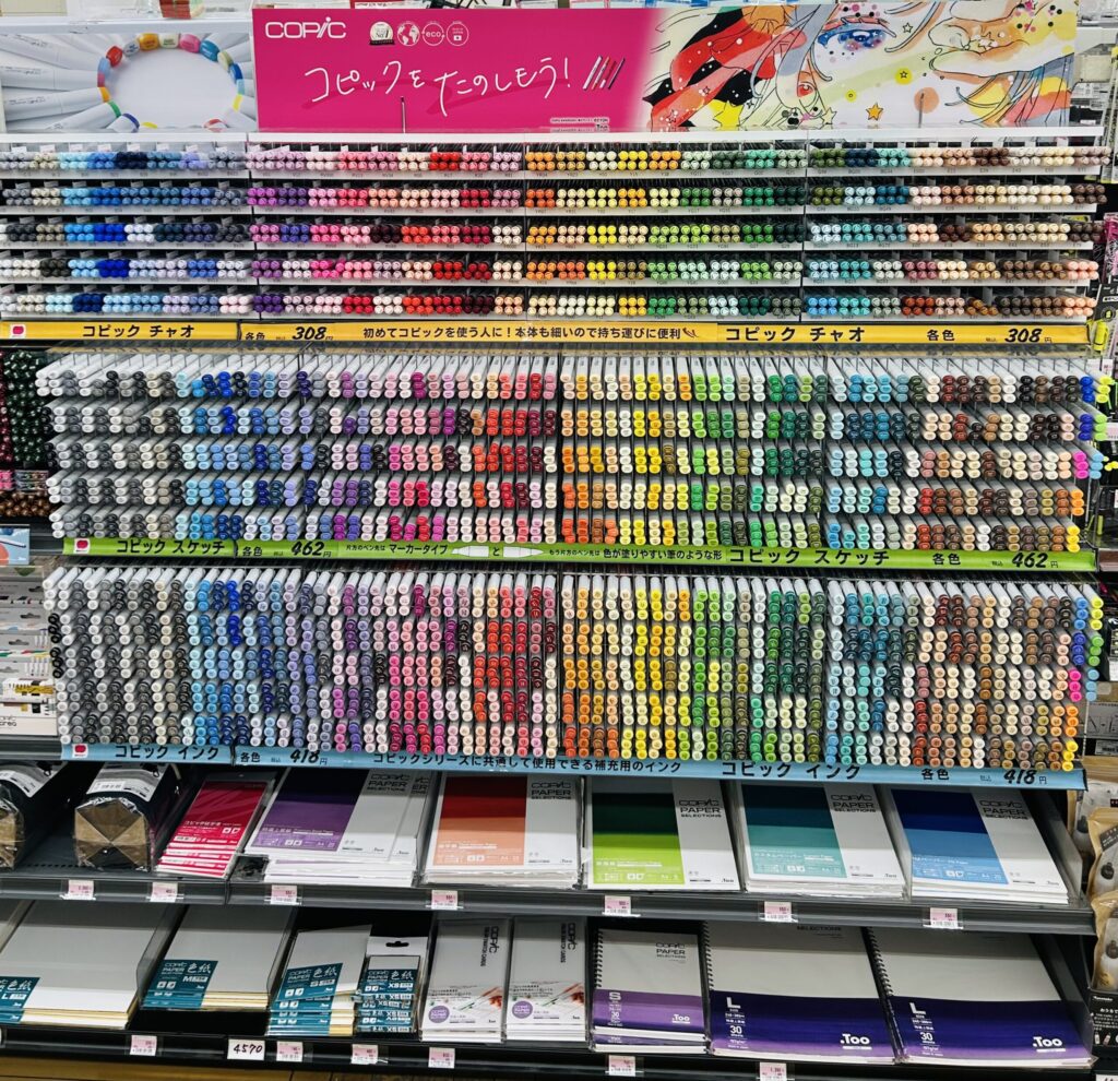 よくみたらコピックだけじゃなくて、漫画の原稿用紙や水彩画・コピック用の用紙も置いています🖼