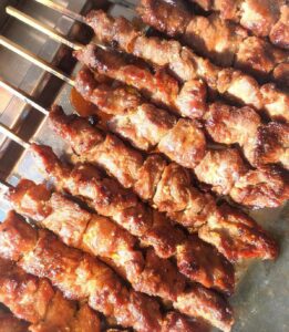 そして今回提供のサブメニュー、❝松岡商店特製焼きそば❞の上にはこちら豚はらみ串のお肉を贅沢にもカットしてトッピング!特製ソースと秘伝たれの絶妙なバランスをお楽しみください!