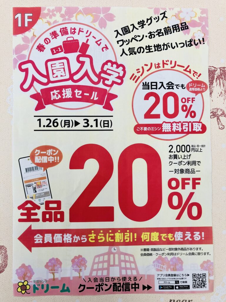2026年2月4日 お知らせ 屋島店 手芸センタードリームよりお知らせです! Share 入学・入園のご準備は!西村ジョイ屋島店へお任せくださいませ! その他、就職で使えるアイテムも多数!品揃え中! 皆様のご来店お待ちしております✨