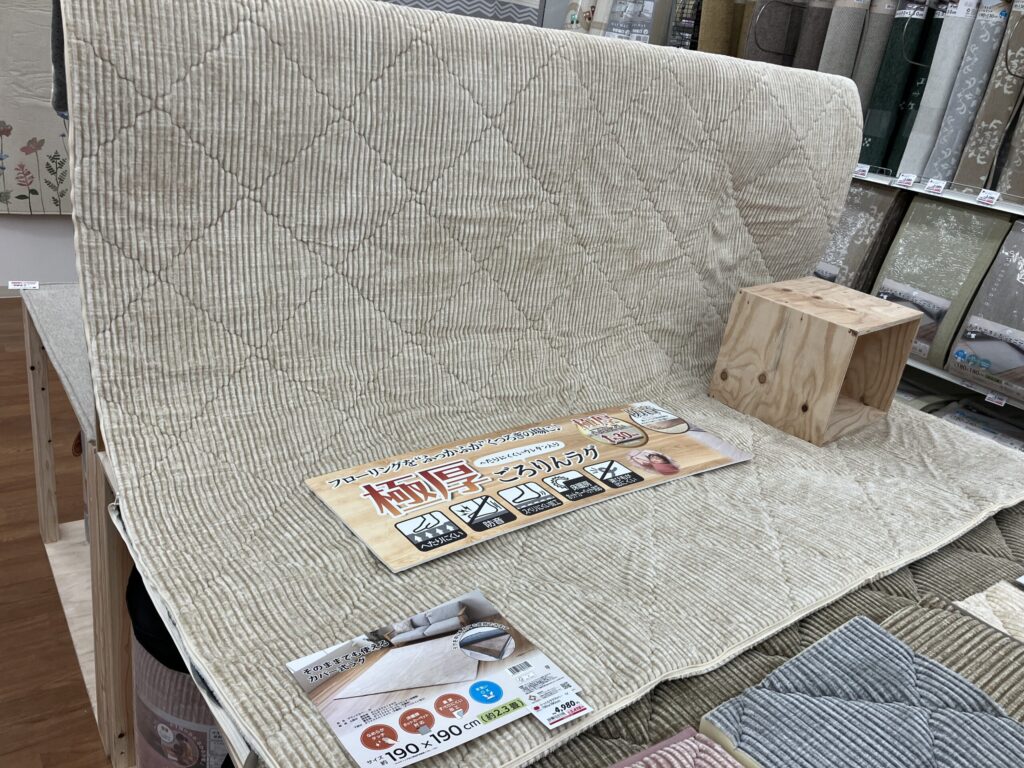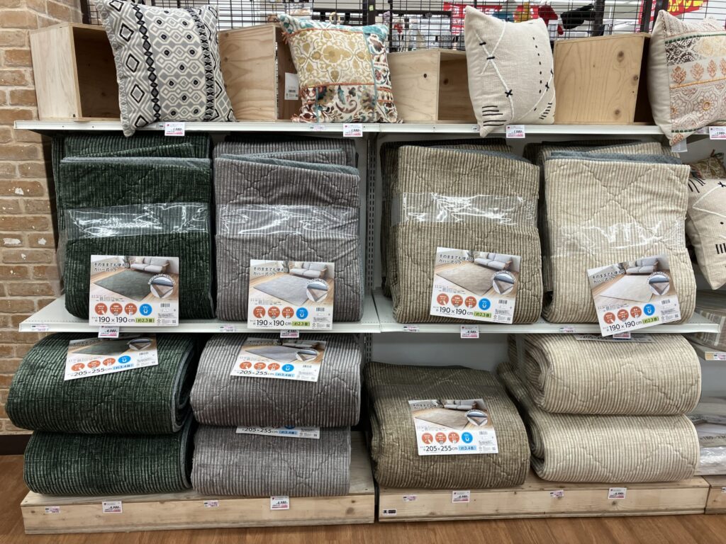 ご紹介した「ふっくらラグカバー」は西村ジョイ屋島店の古着コーナー横、