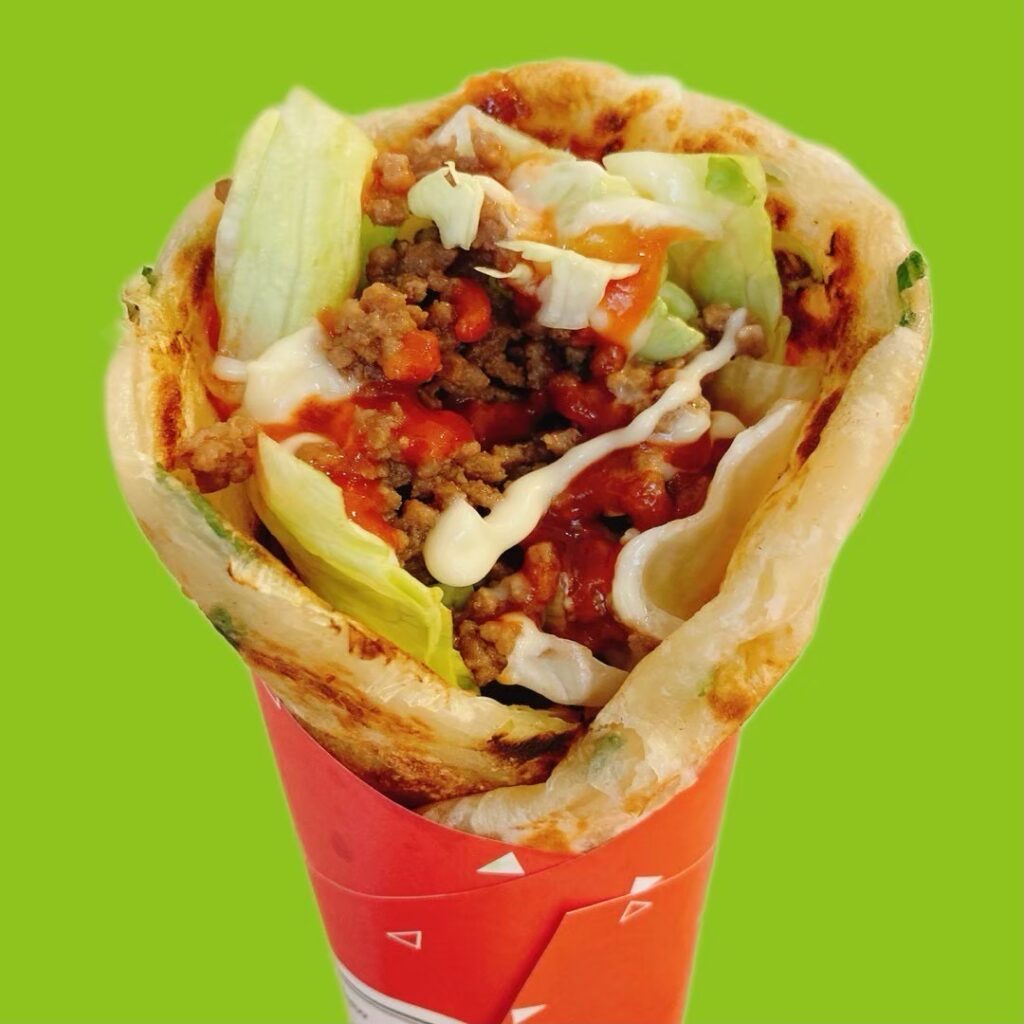 外サクッ!中もちっと生地にお肉やレタスを包んだちょっとピリ辛の特選ソースがアクセント! やみつきになる事まちがいなし。