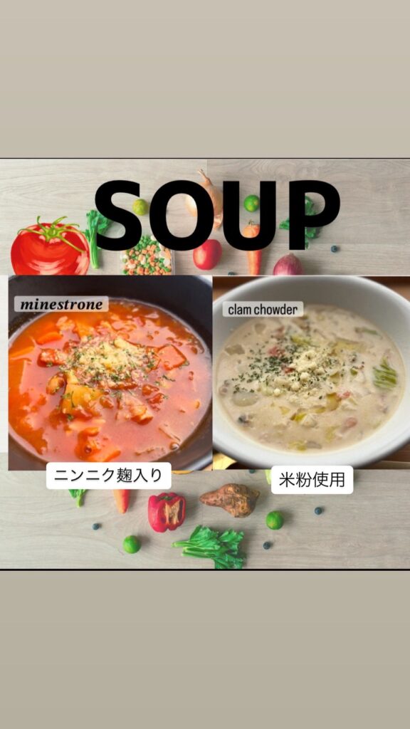 季節の野菜をたっぷり使ったスープや豚汁、香川県産コシヒカリのおにぎりなどをご用意しております