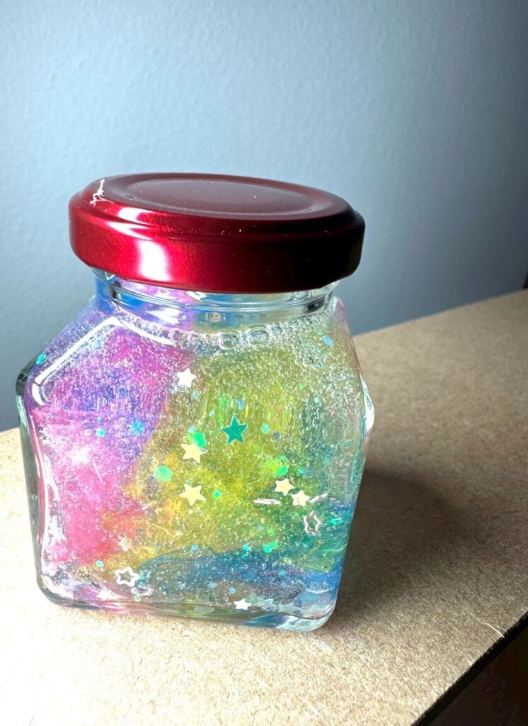 ジャム瓶を使ってのセンサリーボトルを作ります。