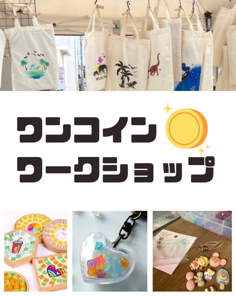 SKYあーと(ワンコインワークショップ、ステンシルバック、キーホルダ ー、コースター作り)