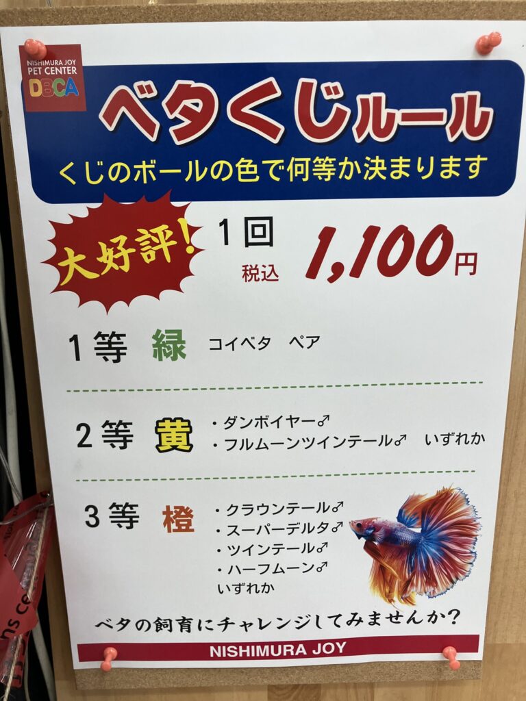 特賞は、ベタ(ペア♂♀)2匹プレゼントいたします🎁✨